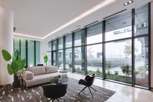 The result is a revitalized reception area that offers a polished first impression, improved functionality, and an elevated tenant experience befitting a premium commercial property.