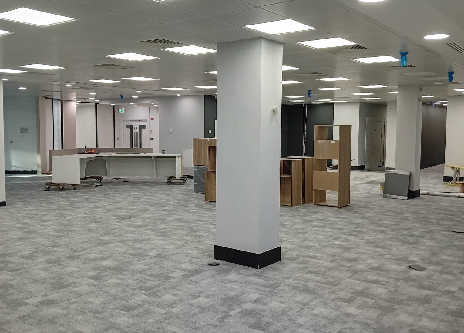 We recently delivered a full ground floor refurbishment at The Oval, transforming a previously occupied tenant space into a bright, modern and flexible Cat A+ environment ready for immediate occupation. The works began with a complete strip-out of the former tenant fit-out, creating a clean foundation for a high-quality remodel.